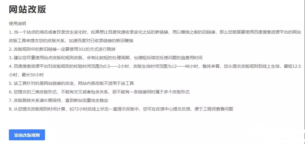 網(wǎng)站的鏈接改版首要用到的東西是百度站長(zhǎng)渠道的網(wǎng)站改版東西,詳細(xì)細(xì)節(jié)闡明如下圖: